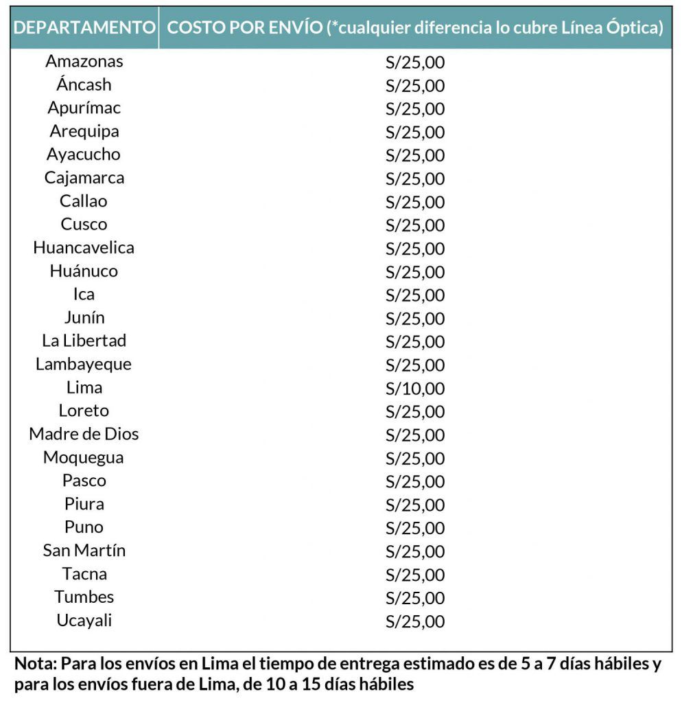 - Los pedidos de Línea Óptica llegan a todas las ciudades en las que tenemos cobertura. Para ver el listado completo de ciudades, revisa nuestra tabla de tiempos y destinos.