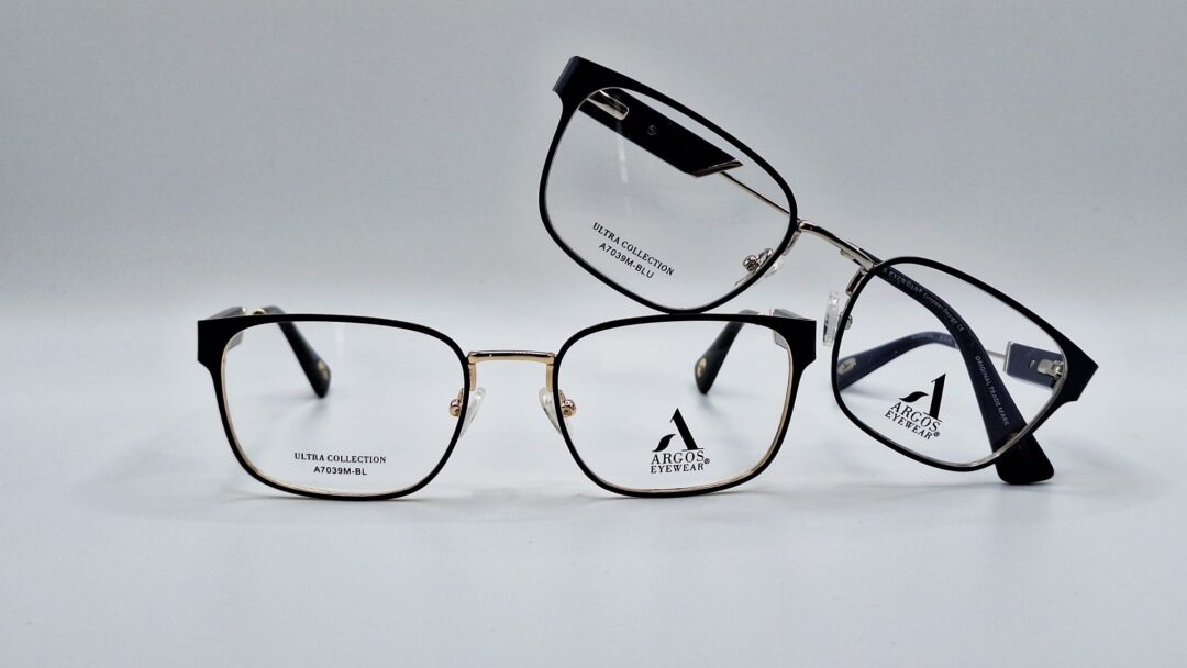 Gafas de Metal A7039M-BL & BLU Talla , de Uso Oftálmicas para Caballero Tipo de montura: Aro Completo, Marca Argos, Color Black and Blue, Forma Rectangulares