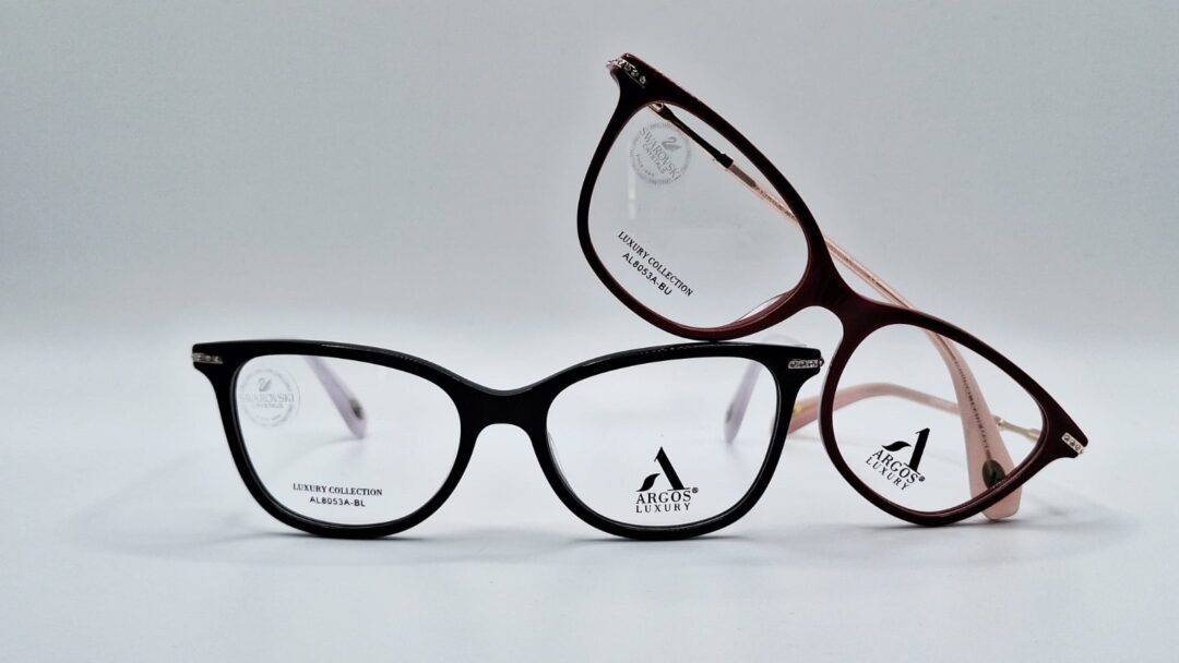 Gafas de Acetato AL8053A-BL & BU, Talla M (Medium), de Uso Oftálmicas para Dama, Tipo de montura: Aro completo, Marca Argos Luxury, Color Black and Burgundy, Forma Ovalados
