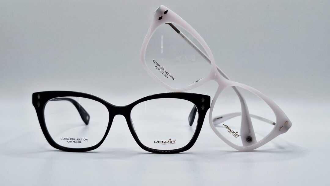Gafas de Acetato K2117AC-BL & WH, Talla M (Medium), de Uso Oftálmicas para Dama, Tipo de montura: Aro Completo, Marca Kenzia, Color Black and White. Forma Ovalados