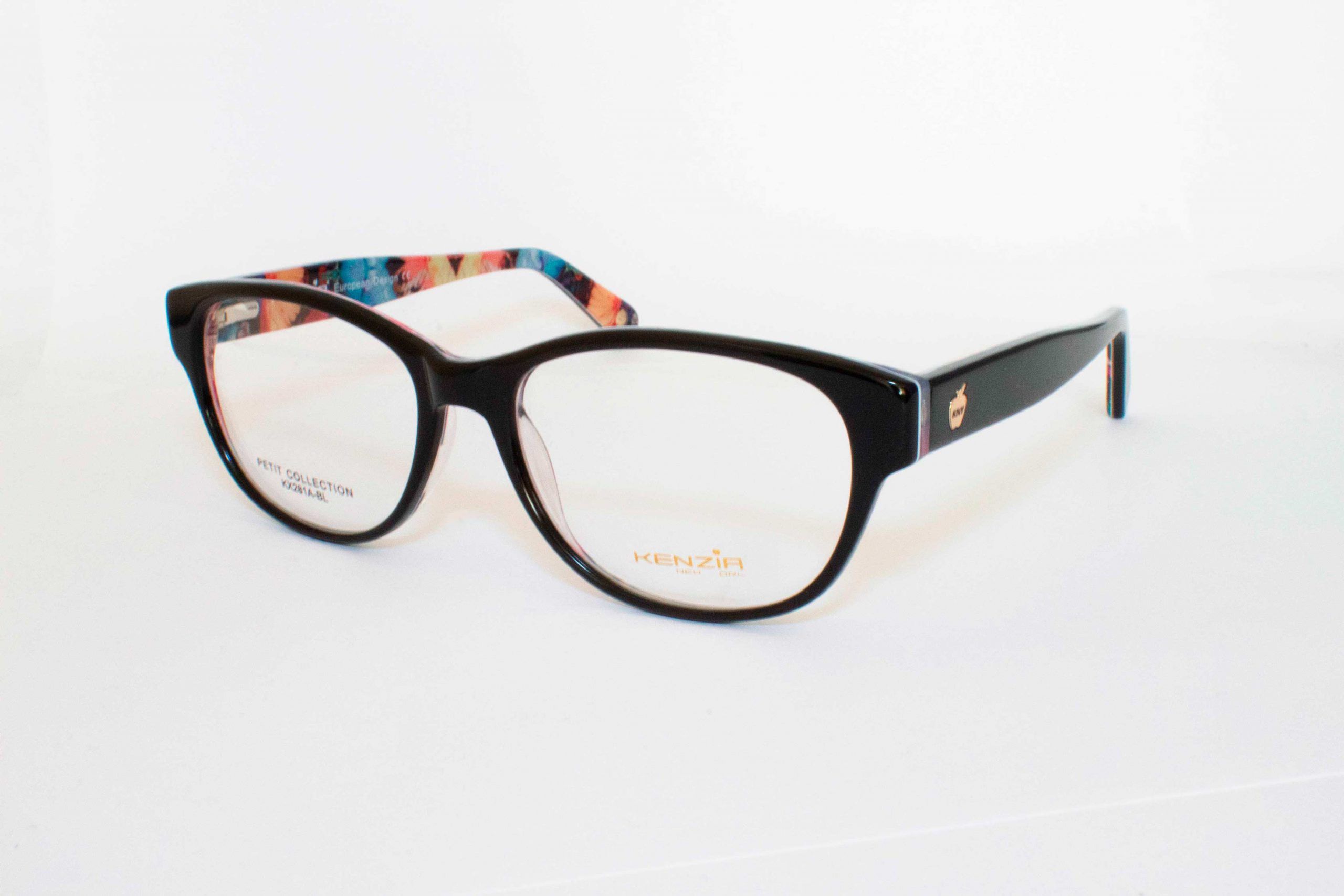 Gafas de Acetato KX281A-BL, Talla S (Small), de Uso Oftálmicas para Dama, Tipo de montura: Aro Completo, Marca Kenzia, Color Black. Forma Ovalados