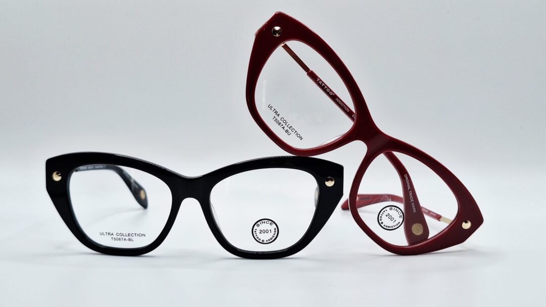 Gafas de Acetato T5087A-BL & BU, Talla M (Medium), de Uso Oftálmicas para Dama, Tipo de montura: Aro completo, Marca Tattoo, Color Black and Burgundy, Forma Cuadrados