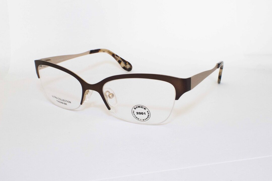 Gafas de Metal TX524M-BR, Talla M (Medium), de Uso Oftálmicas para Dama, Tipo de montura: Semi Al Aire, Marca Tattoo, Color Brown. Forma Agatados