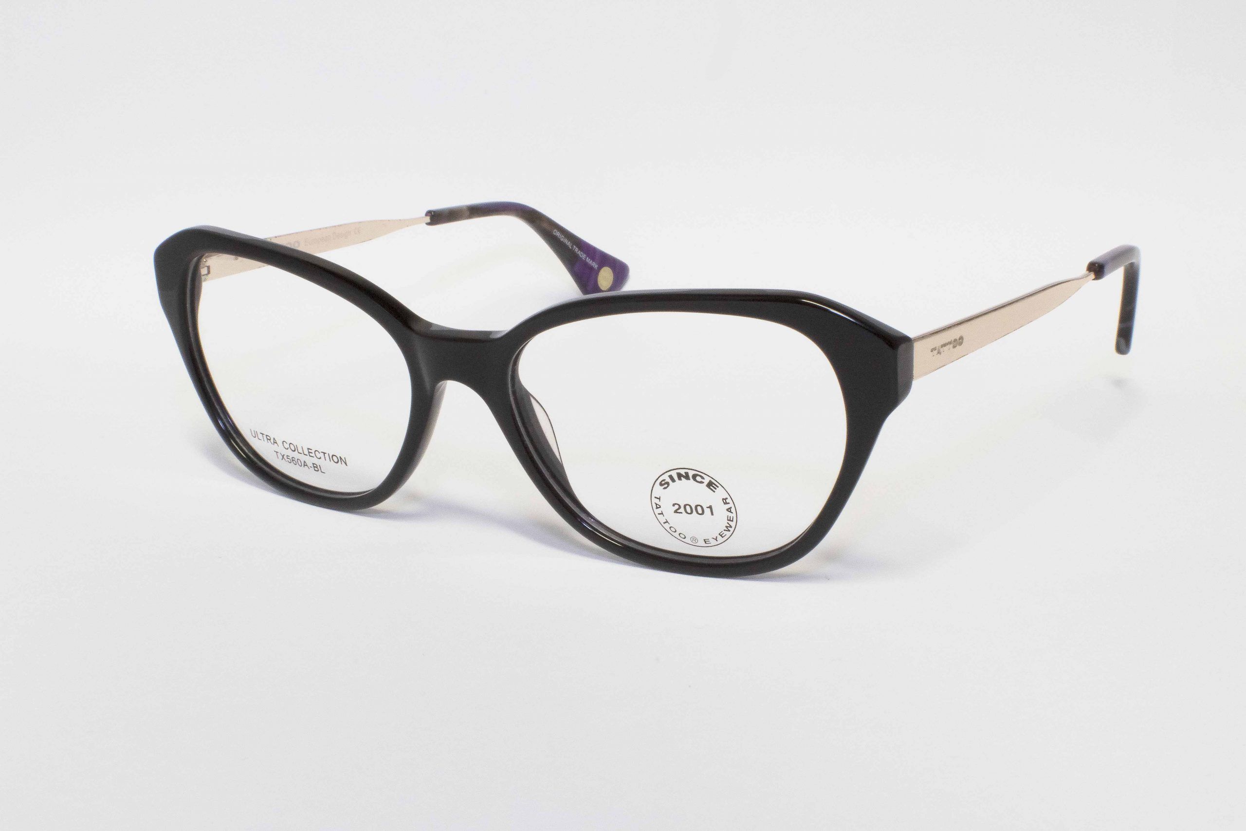 Gafas de Acetato TX560A-BL, Talla M (Medium), de Uso Oftálmicas para Dama, Tipo de montura: Aro Completo, Marca Tattoo, Color Black. Forma Ovalados