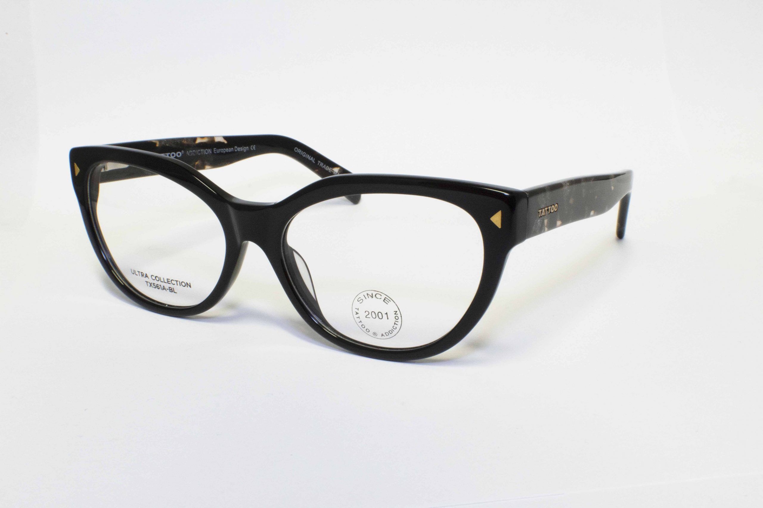 Gafas de Acetato TX561A-BL, Talla M (Medium), de Uso Oftálmicas para Dama, Tipo de montura: Aro Completo, Marca Tattoo, Color Black. Forma Agatados